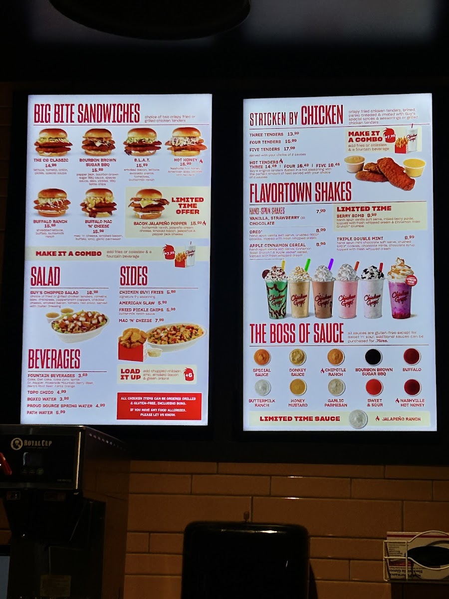 The ambiance is relaxed, featuring comfy black booths and ample seating, making it a great stop before flights. Customers appreciate the speed of the service, and the freshness of the food even during peak hours. While some have mentioned the prices may be higher than average for an airport setting, the generous portion sizes ensure a fulfilling meal. Experience why many return for those classic, flavorful bites at Chicken Guy!.